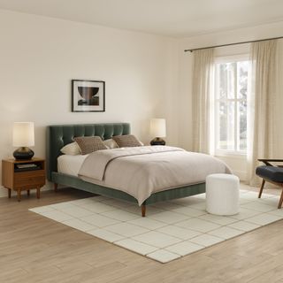 Sven Queen Tufted Velvet Bed - Plush Pacific Green