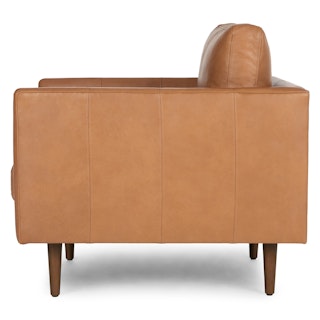 The Burrard chair features sumptuous leather, strong lines, and sinkable cushions. Details such as double-stitched seams, hand-folded corners, and waxed Italian-tanned leather speak to quality construction, while slender wooden legs offer stability without adding bulk. Sit back with a strong drink and a good book, and reflect on your accomplishments — such as your good taste.