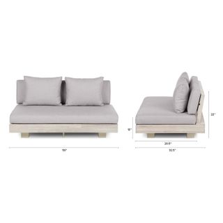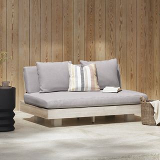 Stay a while. The Lubek loveseat is built from a solid acacia wood base. The sofa is set close to the ground, encouraging you to really sink into those weather-resistant cushions. Crisp cushions and super clean lines add to the Lubek’s modern look, while the warmth of the acacia wood makes the sofa easy to pair with any backyard set up. We call this look “low key modernism."