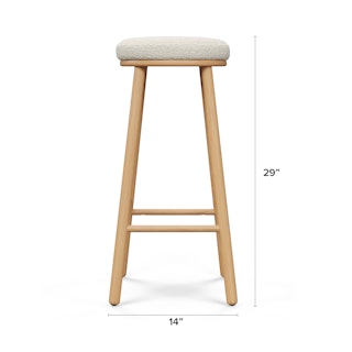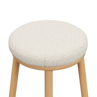The best of both worlds: the Nurmi backless counter stool has a strong, solid foundation of solid wood, and is set apart by a round tuffet of bouclé and foam filling. Two differing foot rest heights make it a restful place to relax at the counter, or you know... in your accent stool location.