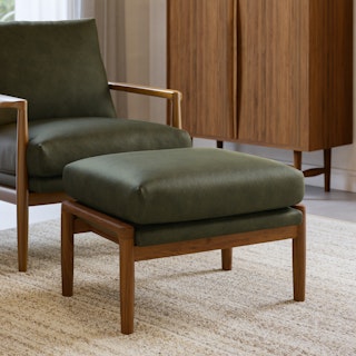 Bavel 25" Leather Ottoman - Charme Green