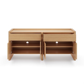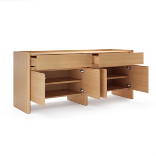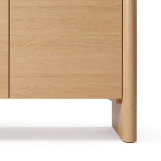 The Torme is characterized by simple lines and thoughtful details. The softly rounded edges are subtle but impactful: the commanding legs are just impactful. Soft-close drawers and doors with hidden pulls make the Torme sideboard a functional, beautiful addition to any space... yet another simple, thoughtful detail.