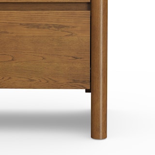 The Torme is characterized by simple lines and thoughtful details. Its five large and deep drawers maximize storage space without compromising on style, and its softly rounded edges are subtle but impactful. The Torme chest is a functional, beautiful addition to any space (but especially moody Norwegian studies).