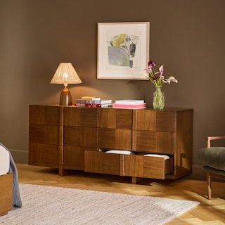 - Checkerboard parquet-patterned drawer fronts