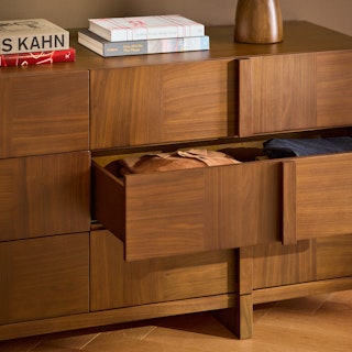 Why should checkerboard parquet be exclusive to flooring? Ayra thought the same and said, "We can do that". With its spacious design aimed at providing optimal functionality, Ayra features large, deep drawers that maximize storage space without sacrificing style. Topped off with its checkerboard parquet drawer fronts with large solid wood handles, Ayra embodies the timeless and refined vibes of yesteryear.