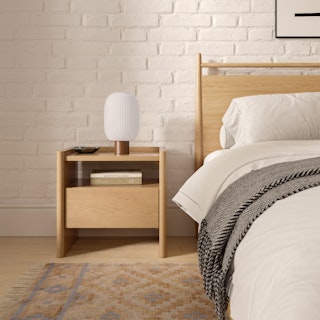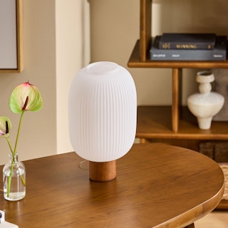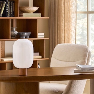 Why settle for pot lights when you can have thoughtfully curated lamps around your home? With its sleek, solid wood base and statement-sized glass shade, Kipp injects a little fancy — dare we say, old money-style — into any dimly-lit room.