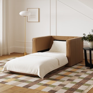 You know what they say: if you can't beat 'em, make the extremely cozy lounge chair into a sleeper lounge. People kept falling asleep on the Sven, so we've cut out the middle man and made the Sven Sleeper Lounge Chair. A tufted seat, precise piping, and round bolster pillows, plus! Plus! A fold out mattress so you can take your Sven lounge into a Sven nap. Stick that in your living room and sleep on it.