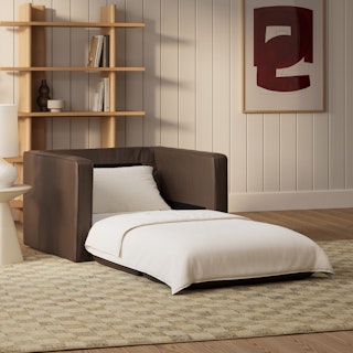 Sven 45.5" Tufted Leather Sleeper Chair - Charme Chocolat