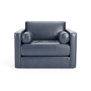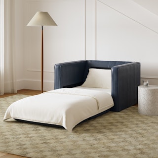 Sven 45.5" Tufted Leather Sleeper Chair - Oxford Blue