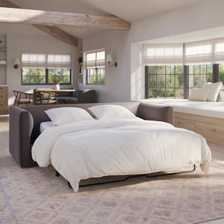 How do you want your sofa to feel? Elevated. Comfortable. Calm. Collected. With clean details and pleasing design heft, the Marina sofa bed manages to feel at once laid back and put together. Generously padded seats and armrests encourage long periods of meandering; fold out that memory foam mattress for a more serious nap. Upholstered with Hale velvet, the Marina is fade-resistant, easy to clean, and anti-crush. Throw on your favorite 90s romcom and bask in a little nostalgia.