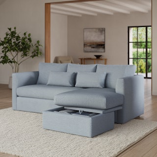 How do you want your sofa to feel? Elevated, comfortable, calm, and collected. With clean details and pleasing design heft, the Marina reversible storage sectional manages to feel at once laid-back and put together. Generously padded seats and armrests encourage long periods of meandering; grab the sheets from the hidden storage and fold out that memory foam mattress for a more serious nap. Upholstered with LifeGuard™ fabric, the Marina has stain-repellant fibres woven in at the fabric level, for an inherently stain resistant and easy to care for product. Throw on your favorite 90s romcom and bask in a little nostalgia.
