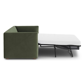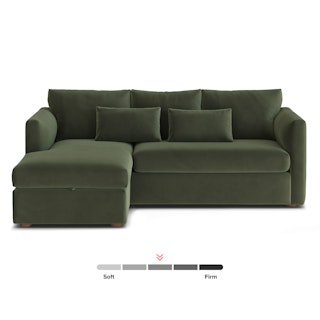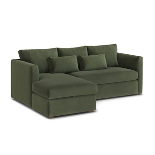 How do you want your sofa to feel? Elevated, comfortable, calm, and collected. With clean details and pleasing design heft, the Marina reversible sleeper storage sectional manages to feel at once laid-back and put together. Generously padded seats and armrests encourage long periods of meandering; grab the sheets from the hidden storage and fold out that memory foam mattress for a more serious nap. Upholstered with Hale velvet, the Marina is fade-resistant, easy to clean, and anti-crush. Throw on your favorite 90s romcom and bask in a little nostalgia.