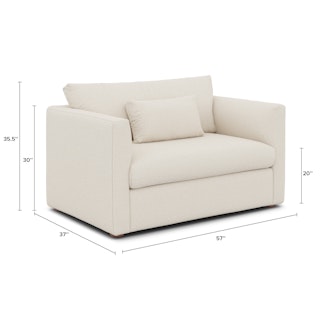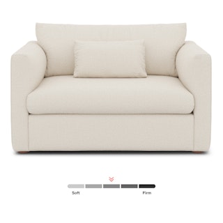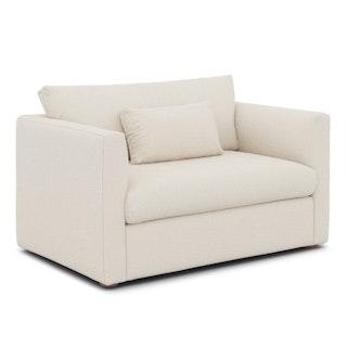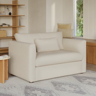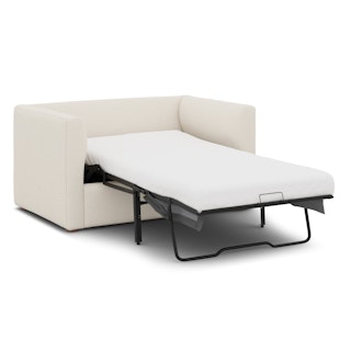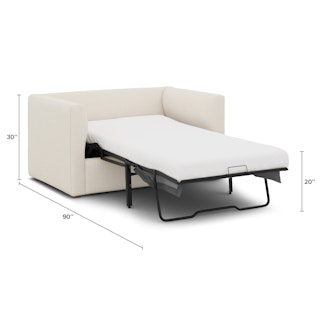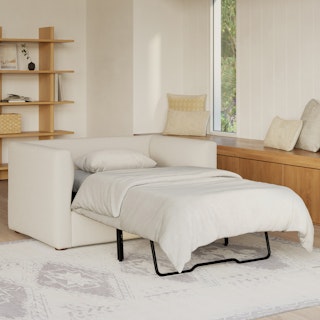 How do you want to feel? Elevated. Comfortable. Calm. Collected. With clean details and pleasing design heft, the Marina sleeper lounge chair manages to feel at once laid back and put together. Generously padded seats and armrests encourage long periods of meandering; fold out that memory foam mattress for a more serious nap. Upholstered with our super soft Bouclé fabric, the Marina is low-absorption with a signature bouncy texture. Throw on your favorite 90s romcom and bask in a little nostalgia.