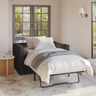 How do you want to feel? Elevated. Comfortable. Calm. Collected. With clean details and pleasing design heft, the Marina sleeper lounge chair manages to feel at once laid back and put together. Generously padded seats and armrests encourage long periods of meandering; fold out that memory foam mattress for a more serious nap. Upholstered with Napa fabric, the Marina is treated with a stain-repellant C0 finish, offering exceptional protection to your sofa while being free of gross forever-chemicals. Throw on your favorite 90s romcom and bask in a little nostalgia.