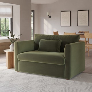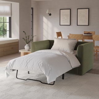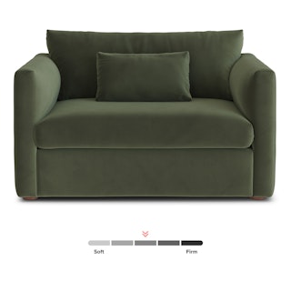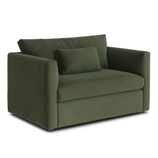 How do you want to feel? Elevated. Comfortable. Calm. Collected. With clean details and pleasing design heft, the Marina sleeper lounge chair manages to feel at once laid back and put together. Generously padded seats and armrests encourage long periods of meandering; fold out that memory foam mattress for a more serious nap. Upholstered with Hale velvet, the Marina is fade-resistant, easy to clean, and anti-crush. Throw on your favorite 90s romcom and bask in a little nostalgia.