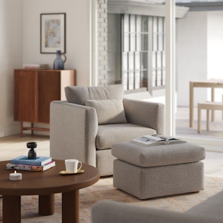 How do you want to feel? Elevated. Comfortable. Calm. Collected. With clean details and pleasing design heft, the Marina lounge chair manages to feel at once laid back and put together. Generously padded seats and armrests encourage long periods of meandering; bolster pillows make perfect props for a surprise nap. Upholstered with Clover fabric, the Marina is treated with a stain-repellant C0 finish, offering exceptional protection to your sofa while being free of gross forever-chemicals. Throw on your favorite 90s romcom and bask in a little nostalgia.