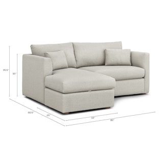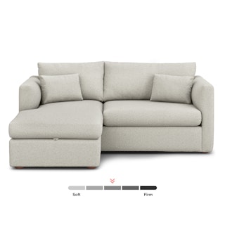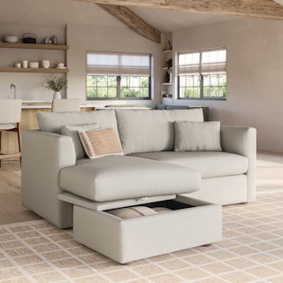 How do you want your sofa to feel? Elevated, comfortable, calm, and collected. With clean details and pleasing design heft, the Marina reversible storage sectional manages to feel at once laid-back and put together. Generously padded seats and armrests encourage long periods of meandering, while the hidden storage below the chaise can hide all kinds of goodies. Upholstered with Clover fabric, the Marina is treated with a stain-repellant C0 finish, offering exceptional protection to your sofa while being free of gross forever-chemicals. Throw on your favorite 90s romcom and bask in a little nostalgia.