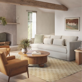 How do you want to feel on your sofa? Elevated. Comfortable. Calm. Collected. With clean details and pleasing design heft, the Marina couch manages to feel at once laid back and put together. Generously padded seats and armrests encourage long periods of meandering; bolster pillows make perfect props for a surprise nap. Upholstered with Clover fabric, the Marina is treated with a stain-repellant C0 finish, offering exceptional protection to your sofa while being free of gross forever-chemicals. Throw on your favorite 90s romcom and bask in a little nostalgia.