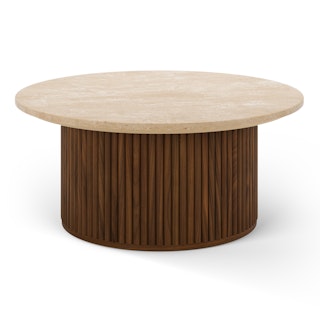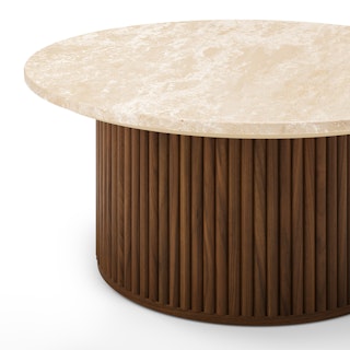 Tala 31.5" Travertine Coffee Table - Walnut