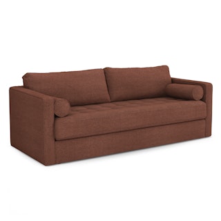 The mid-century classic, reimagined. This fresh take on our most popular collection features the exact dimensions as its tapered-leg sibling, but now fully grounded — dust bunnies have nowhere to hide. Built upon a corner-blocked solid wood frame with loose bolsters and back cushions, this iteration stuns just like its lofty siblings. Tuck it into a nook or make it the main event of your space. It’s destined to be a star.