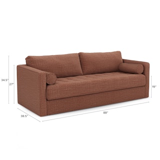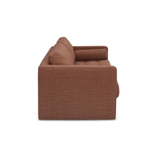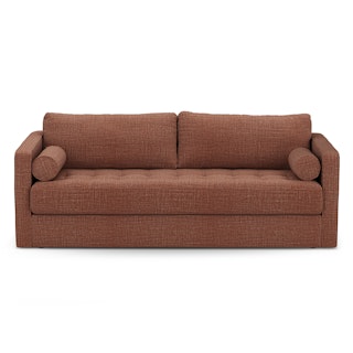 The mid-century classic, reimagined. This fresh take on our most popular collection features the exact dimensions as its tapered-leg sibling, but now fully grounded — dust bunnies have nowhere to hide. Built upon a corner-blocked solid wood frame with loose bolsters and back cushions, this iteration stuns just like its lofty siblings. Tuck it into a nook or make it the main event of your space. It’s destined to be a star.