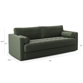 Sven 88" Grounded Tufted Velvet Sofa - Plush Pacific Green