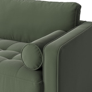 The mid-century classic, reimagined. This fresh take on our most popular collection features the exact dimensions as its tapered-leg sibling, but now fully grounded — dust bunnies have nowhere to hide. Built upon a corner-blocked solid wood frame with loose bolsters and back cushions, this iteration stuns just like its lofty siblings. Tuck it into a nook or make it the main event of your space. It’s destined to be a star.