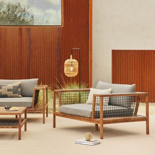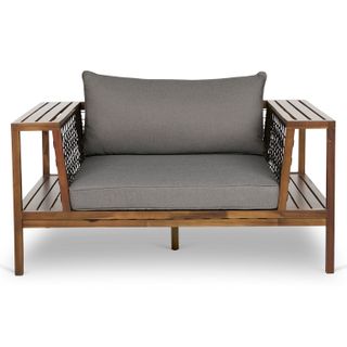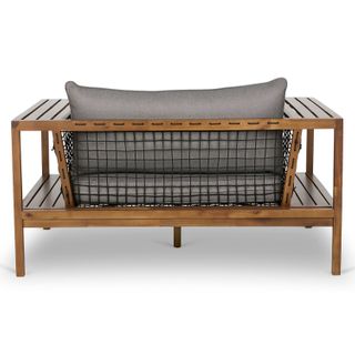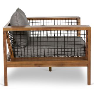 - Solid acacia frame will weather to a soft gray over time.