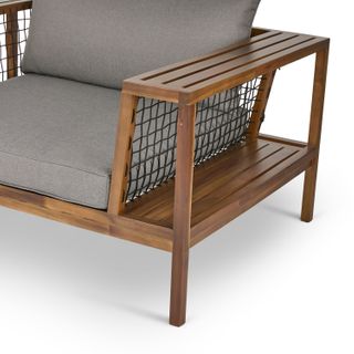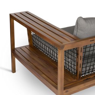 Comfort, supersized. Our Callais Lounge Chair features oversized proportions and an intentionally deep seat with room to host many. A solid acacia wood and knotted rope frame houses double slatted shelves on either side for convenient storage — perfect for stashing your drink or summer read when you inevitably need to sleep off that one slider too many. Whether it's time spent with family or days lounging solo, consider the Callais an invitation to tuck in, turn off, and sprawl out. Because we all deserve to feel a little extra sometimes.