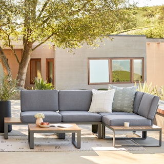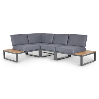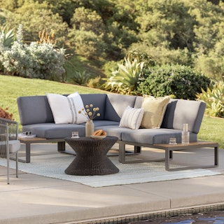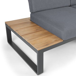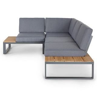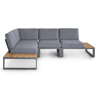 The Kezia Whale Gray sectional gives you all the freedom to lounge how you like, when you like. Maybe you’re stretched out on the chaise while your husband and his rowdy friends chest bump during the big game. Perhaps you’re curled up with a book while your toddlers make mud pies (not an euphemism) in the sandbox. Your friends might be gathered on your rooftop deck celebrating a conscious uncoupling. Whatever the outside brings, you’ve got the tough aluminum base, acacia wood construction, and built-in side table of the Kezia by your side.