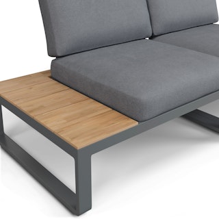 Function and fashion, together. The Kezia is all the loungey comfort of a deck chair, plus the drink-holstering convenience of a side table in a single piece of furniture. Constructed with a tough aluminum base and acacia wood, the Kezia will see you through many seasons of barbeques and late-night patio beers.