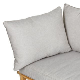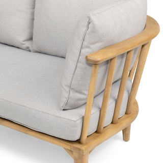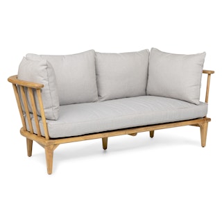 R + R, but make it cute. The Sora Loveseat is mid-century goodness in 21st century materials. A solid wood base, rounded corners, and pretty spindled back makes for an outdoor loveseat that is eye-catching but has substance — just like your summer crush. Rest on those plush cushions between sets of beach volleyball, knowing that those pillows are upholstered in weather-resistant fabric and will brush off easily. Serve!