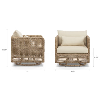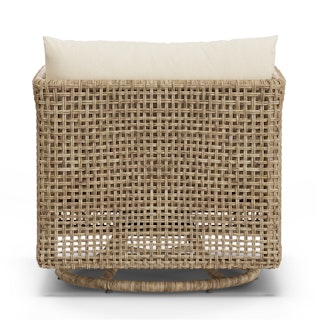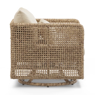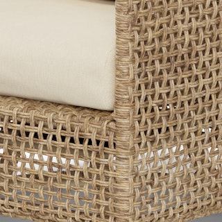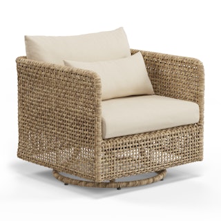 The best kind of fair-weather friend. With synthetic all-weather wicker, the Robbi Swivel Lounge Chair just wants to spend the summer outside, basking in the sun and soaking up the happy vibes of your al fresco dinners. The open-weave wicker feels visually light and relaxed, and the 360-degree swivel mechanism ensures you'll always be the center of the conversation — it is your party, after all.