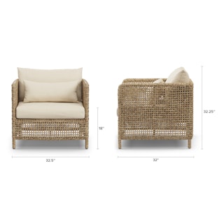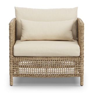 The best kind of fair-weather friend. With synthetic all-weather wicker, the Robbi Lounge Chair just wants to spend the summer outside, basking in the sun and soaking up the happy vibes of your al fresco dinners. The open-weave wicker feels visually light and relaxed, and the thickly stuffed, weather-resistant cushion is the perfect spot to rest after a long day of playing in the yard.