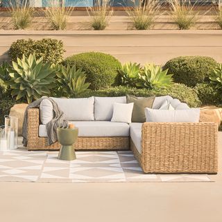 Twisted sister. The Capra sectional is a blocky beauty: a twisted wicker body makes for a solid base that doesn’t feel heavy. Soft, weather resistant cushions invite your friends to stay for drinks, dinner, and dessert al fresco. Pair them together or put them across from each other: the Capra’s modular style makes it adaptable to all kinds of set up.