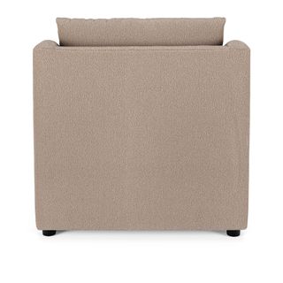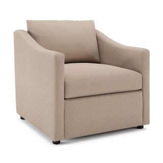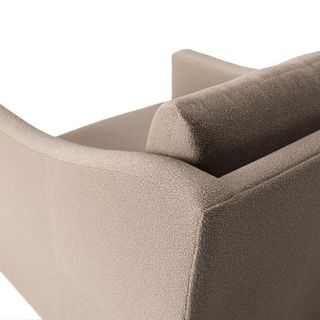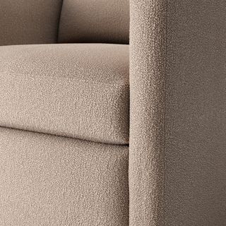- Upholstered in a soft, non-absorptive bouclé fabric. Bouclé is an excellent choice for those who want an easy-to-care-for, style-forward lounge chair