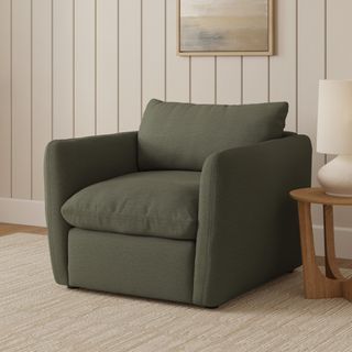 - Loose, reversible back and seat cushions