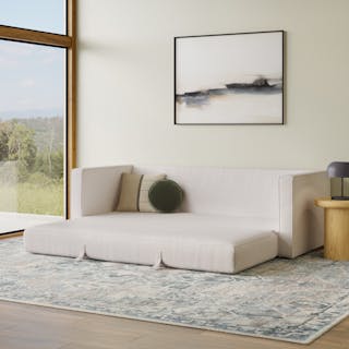 Ever looked at our best-selling Sven and thought “Huh, this thing looks so comfy, I wish they made a Sofa Bed version”. Well, dream no longer. The Sven Sofa Bed is here to make all your slumber-themed dreams come true. The Sven Sofa Bed is Indistinguishable from the rest of the collection, with its signature tufted bench seat, overstuffed cushions, and round bolsters still present. But now, simply grab the two pulls on the backside of the seat cushion and unfold the mattress for a seamless transition—Classy timeless couch to snoozeland in seconds, what's not to love?