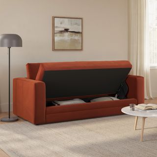 Riley 84" Velvet Storage Sofa - Hale Rust