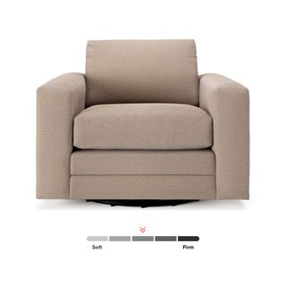 Upholstered in our ever-so-soft Bouclé fabric, you can enjoy your morning cuppa in peace. Whether you want the ultimate lounger to melt into its plump poly-fill cushions or the perfect swivel chair to practice your Bond villain turn, Riley is gentle but firm.