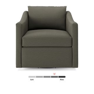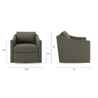 A minimal look with maximum impact... The Landry swivel chair marries laid-back comfort with practical swivel functionality. The result? A lounge chair that's as comfortable hosting movie night as it is cocktail hour. With its sloping sleigh-style arms and clean and straight lines, set atop a 360-degree swivel base, it is a versatile piece that pairs with various interior design styles. Whether against a warm white backdrop, a boldly patterned rug, or draped with your favorite blanket, the Landry adapts to your unique style, adding a touch of easygoing elegance to any setting.