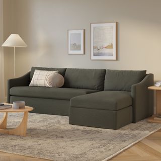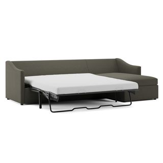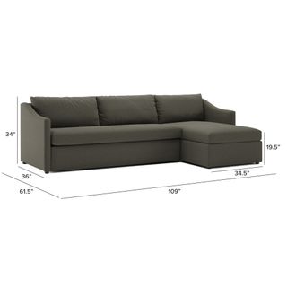 A minimal look with maximum impact... and maximum function. The Landry Sofa Bed marries laid back comfort with elegant details to produce a sofa that is as comfortable hosting movie night as it is your in-laws. Sloping sleigh-style arms and clean, straight lines make it simple to pair this sofa with many styles. With a spacious chest hidden below its chaise seat, and pull-out memory foam mattress, this sofa bed is compact, functional, and comfortable. Almost too comfortable.