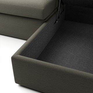 - Spacious storage hidden beneath chaise cushion. Accessible by an easy-to-use hydraulic-assisted lift function