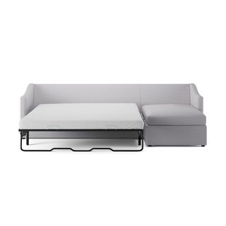A minimal look with maximum impact... and maximum function. The Landry Sofa Bed marries laid back comfort with elegant details to produce a sofa that is as comfortable hosting movie night as it is your in-laws. Sloping sleigh-style arms and clean, straight lines make it simple to pair this sofa with many styles. With a spacious chest hidden below its chaise seat, and pull-out memory foam mattress, this sofa bed is compact, functional, and comfortable. Almost too comfortable.