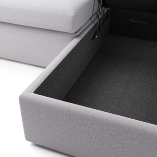 - Spacious storage hidden beneath chaise cushion. Accessible by an easy-to-use hydraulic-assisted lift function