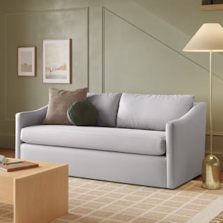 A minimal look with maximum impact. The Landry marries laid back comfort with elegant details to produce a loveseat that is as comfortable hosting movie night as it is a cocktail hour. Sloping sleigh-style arms and clean straight lines make it simple to pair this loveseat with many different styles. Try it with a warm white backdrop, against a wildly patterned rug, or draped with your favorite blanket. The Landry is easygoing style at its best.