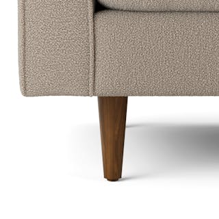 - Upholstered in a soft, non-absorptive bouclé fabric. Bouclé is an excellent choice for those who want an easy-to-care-for, style-forward sofa