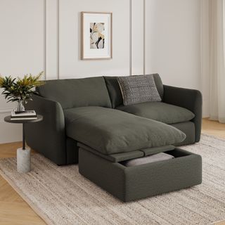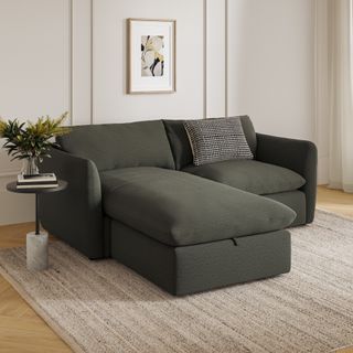 Cloud kingdom, population: you. The Leigh is our comfiest sofa ever, and now it's available as the comfiest hybrid of all: a reversible, storage, sleeper sectional—mouth full, we know. Stuffed with super-soft foam and duck down, the Leigh is your perfectly-sinkable sofa solution that still looks polished and poised. Upholstered with stain-repellent Silver fabric, you can rest easy.