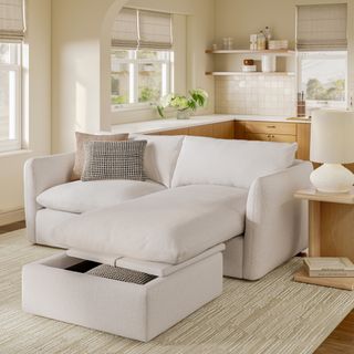 Cloud kingdom, population: you. The Leigh is our comfiest sofa ever, and now it's available as the comfiest hybrid of all: a reversible, storage, sleeper sectional—mouth full, we know. Stuffed with super-soft foam and duck down, the Leigh is your perfectly-sinkable sofa solution that still looks polished and poised. Upholstered with stain-resistant Napa fabric, you can sleep easy.