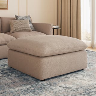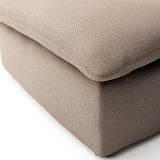 Cloud kingdom, population: you. The Leigh ottoman is our companion piece to our comfiest sofa ever. Upholstered with our ever-so-soft bouclé fabric, the Leigh ottoman is here to help you rest easy.